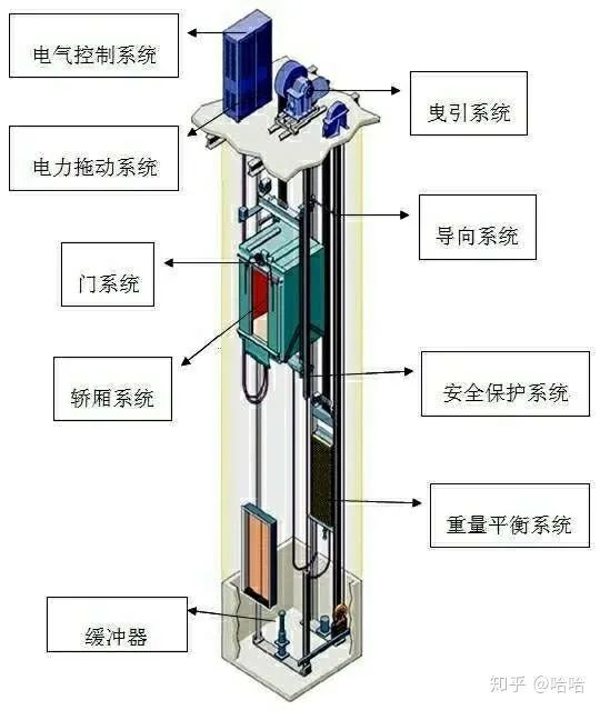 一、曳引系統(tǒng):電梯曳系統(tǒng)的功能是輸出動(dòng)力和傳遞動(dòng)力,驅(qū)動(dòng)電梯運(yùn)行。主要由曳引機(jī),曳引鋼絲繩,導(dǎo)向輪和反繩輪組成。拽引機(jī)為電梯的運(yùn)行提供動(dòng)力,由電動(dòng)機(jī),拽引輪,連軸器,減速箱,和電磁制動(dòng)器組成。拽引鋼絲的兩端分別連轎廂和對(duì)重,依靠鋼絲繩和拽引輪之間的摩擦來驅(qū)動(dòng)轎廂升降。導(dǎo)向輪的作用是分開轎廂和對(duì)重的間距,采用復(fù)繞型還可以增加拽引力。