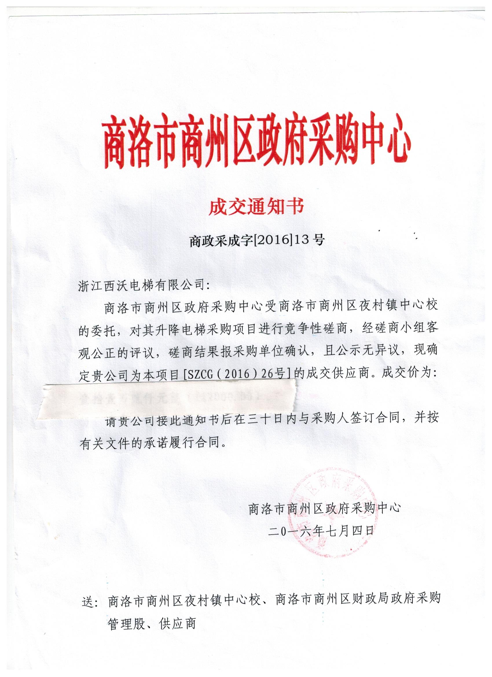 商洛市商州區(qū)夜村鎮(zhèn)中心幼兒園電梯中標(biāo)